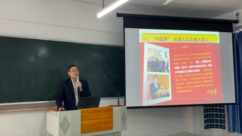 课堂上,孟允煌书记分别从“中国梦”的提出及其重大意义、“中国梦”的丰富内涵和时代特征、如何实现“中国梦”、当代大学生如何为实现中华民族伟大复兴中国梦而努力奋斗等四个方面,逐一展开讲授。
