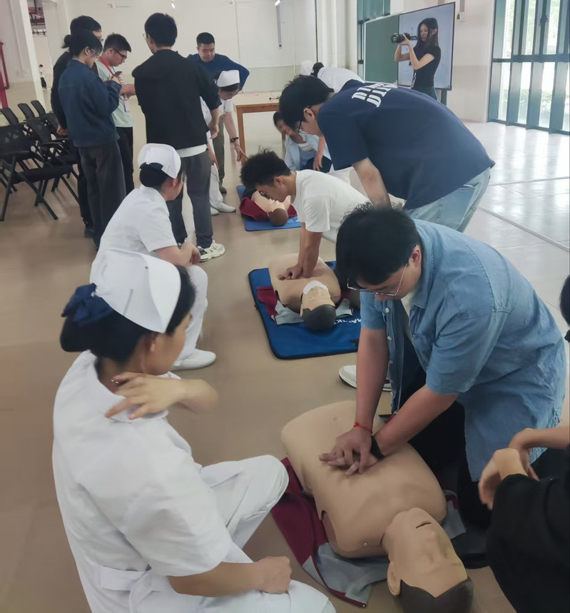 活动现场,李子教授带领护理系教师团队,通过理论讲解、动作示范,向师生们细致地介绍心肺复苏的重要性、适用场景及操作步骤。随后,师生们分组进行实践演练,教师团队一对一指导,及时纠正不规范动作。