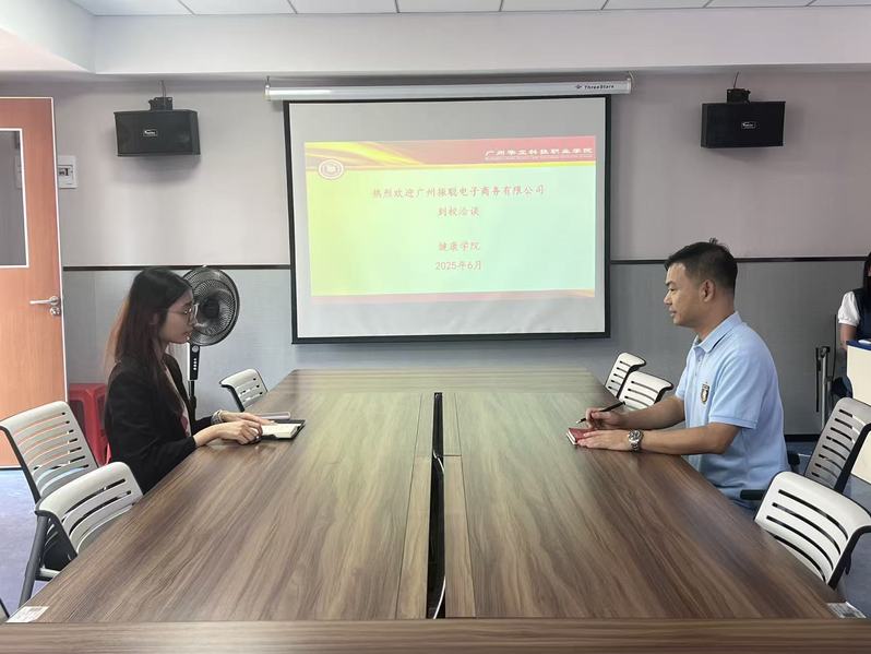 2025年6月25日,广州振聪电子商务有限公司人事主管到访广州华立科技职业学院健康学院,与健康学院刘伟鑫副院长就双方已签署的就业育人项目实施情况展开深入交流,共谋项目优化与深化合作路径。