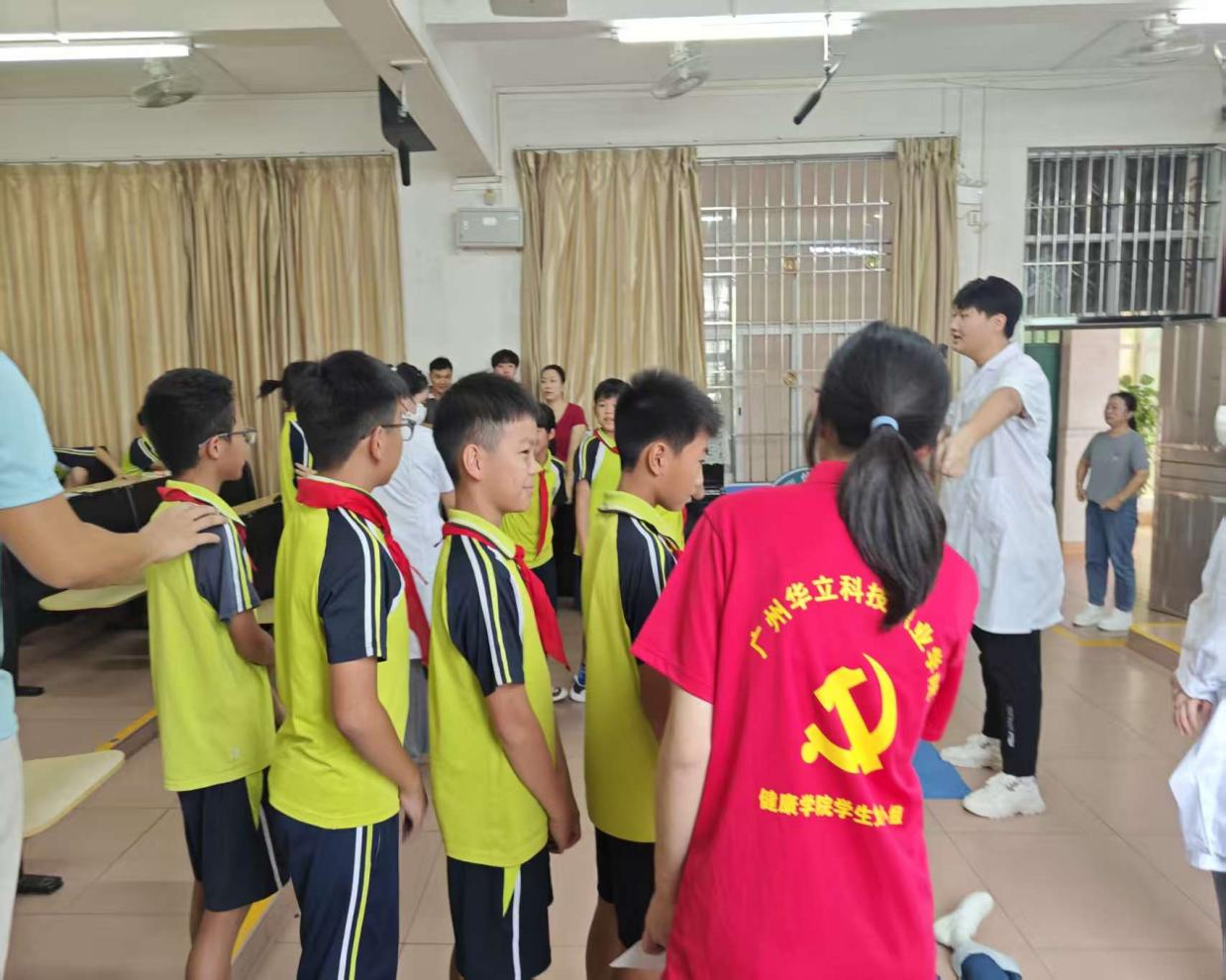 2025年10月13日,广州华立科技职业学院健康学院以“一院一品牌”特色党建活动为引领,组织教师党员以及党建小组干部代表,携手团委学生会干部代表,奔赴增城区增江街中心小学,开展了一场以“守护安全,‘救’在身边”为主题的急救知识普及公益活动。活动采用系统讲解、技能演示与互动实践相结合的方式,为小学生们呈上了一堂生动且实用的安全教育课。