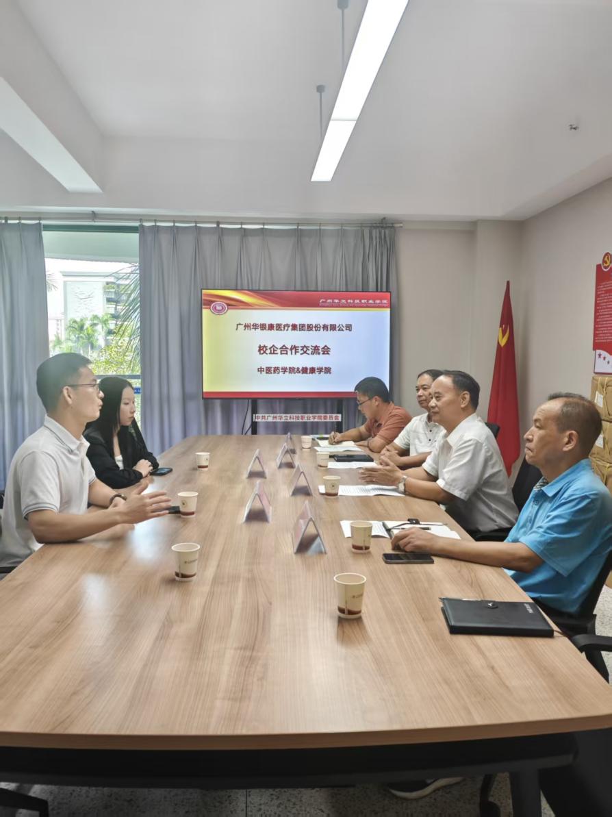 2025年9月30日,华银康集团人事主管杨伟达一行莅临我校,就校企合作事宜与校方展开深入洽谈。我校廖俊杰校长、健康学院雷毅雄院长、中医药学院王晖院长、教务处实践教学科韦建林科长等相关领导出席洽谈会。