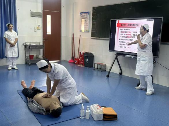 在理论讲解环节,健康学院专业老师凭借深厚的专业知识和丰富的实践经验,以通俗易懂的方式详细介绍了心肺复苏的操作步骤,从判断意识、呼叫救援到胸外按压、人工呼吸,每一个环节都讲解得细致入微。同时,还深入剖析了AED的工作原理及使用方法,让大家了解到这一“救命神器”在急救中的关键作用。