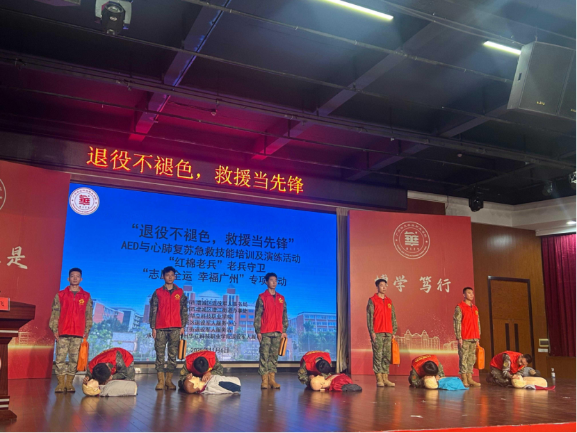为积极响应第十五届全运会及相关残特奥会的安全保障要求,切实提升校园与社区的应急救护水平,11月6日下午,一场意义非凡的“退役不褪色,救援当先锋”主题活动在广州华立科技职业学院图书馆8楼盛大举行。此次活动由广州市增城区退役军人事务局指导,广州市增城区退役军人服务中心、增江街退役军人服务站主办,广州华立科技职业学院全力承办。活动吸引了近100名退役军人踊跃参与,取得了圆满成功。
