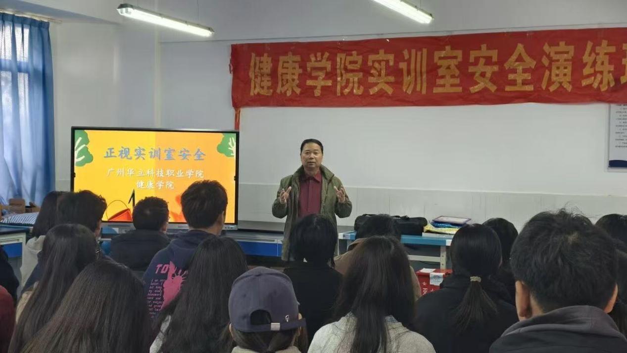 一、强化思想:安全宣讲筑牢意识根基 演练启动前,健康学院院长雷毅雄老师以亲身经历为切入点,强调实训室用电规范、消防设施使用等安全要点,明确“安全意识是校园生活基本保障”的核心要求;实验室主任李佰桓老师则聚焦实操技能,详解火场逃生路线、灭火器操作步骤,并结合校园安全案例,帮助师生将理论知识转化为防护能力。