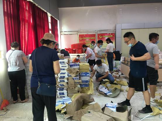 2020年5月16日上午,计算机信息工程学院在院长王建华、副院长李静的带领下,计算机信息工程学院全体教师都参与到了此次整理书籍、邮寄教材的过程中,对计算机信息工程学院19级的近千名学生,按专业将教材进行拆包、分拣,并(由快递公司人员)装袋、打包、贴单和邮寄。