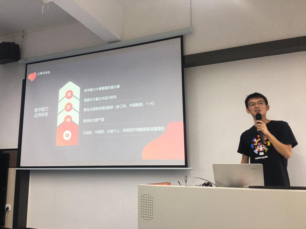 对“教学能力大赛”提出了自己个人的观点,认为教学能力大赛看重的是比赛,要迎合国家发展的趋势(新工科、中国制造、1+X),既要创新也要严谨,要做到大到国,中到校,小到个人,科研的作用都极其重要的。