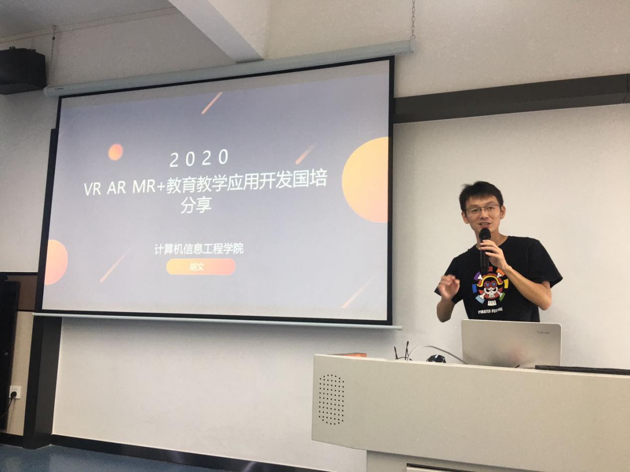 胡文老师向我们简述了什么是VR AR MR,VR的发展历程、VR的3特性,对VR的发展前景以及对VR的现状进行了一系列的简述介绍,还向我们展现了在培训期间所用VR技术拍摄的视频和自己用VR技术做的一款小游戏。