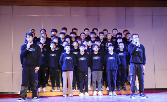 接着由计算机学院20级进入决赛的七个班依次有序上场,他们站得笔直,唱得热血沸腾,各班展现了出色的面貌。