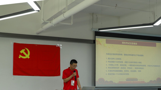 由党建小组成员陈文杰同学致辞,他强调了各位学员参加结业考试需要注意的事项: