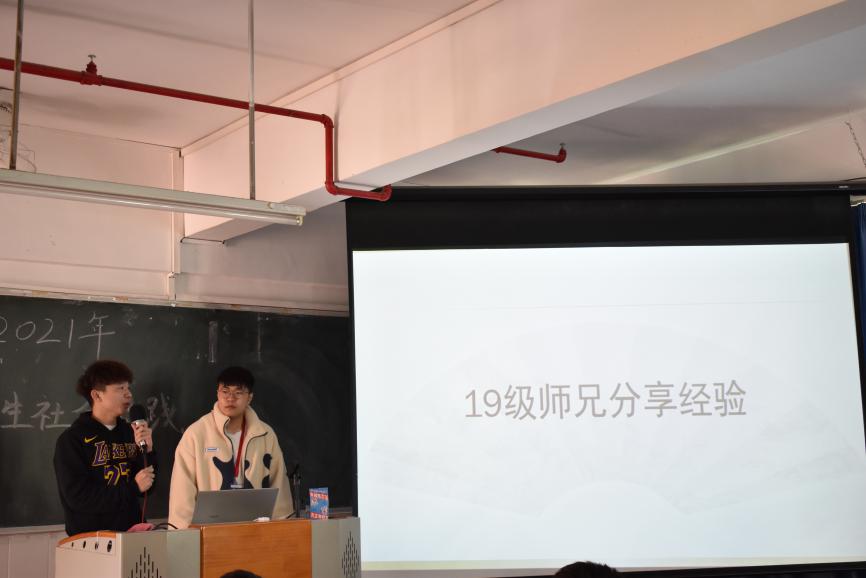接着由19级蔡航师兄、曾洁彬师兄分享活动经验。