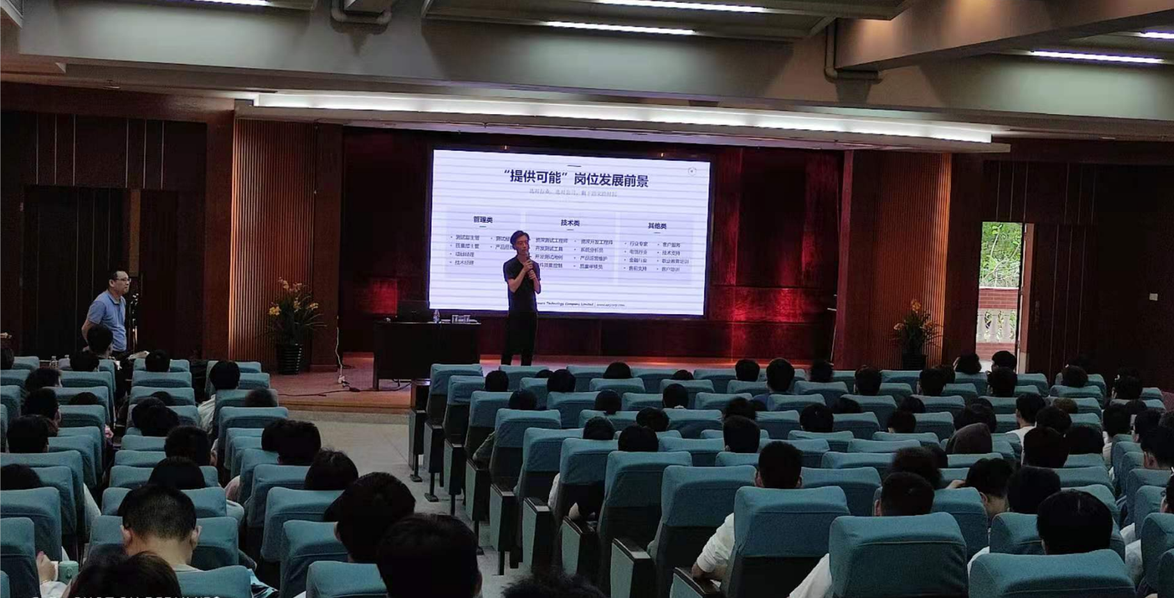 两家公司是开发游戏类产品、软件开发、软件测试三为一体的跨地区的软件技术开发企业,是中国最知名的上市软件企业之一,面向粤港澳大湾区企业提供软件技术服务和培养优秀的软件开发技术人才。此次面向我校2019级招聘软件测试岗位、软件开发JAVA、.net、Android、IOS、前端开发等多个岗位,需求达100多人。宣讲会上,刘鑫总监和陈纪强经理分别介绍了两家公司的组成以及发展历程,岗位前景和个人晋升机制等内容,并通过问答调动应聘学生的积极性,现场气氛十分活跃。随后,宣讲会现场组织进群投简历选拔面试,同学们也借助此次机会踊跃展现了自己。