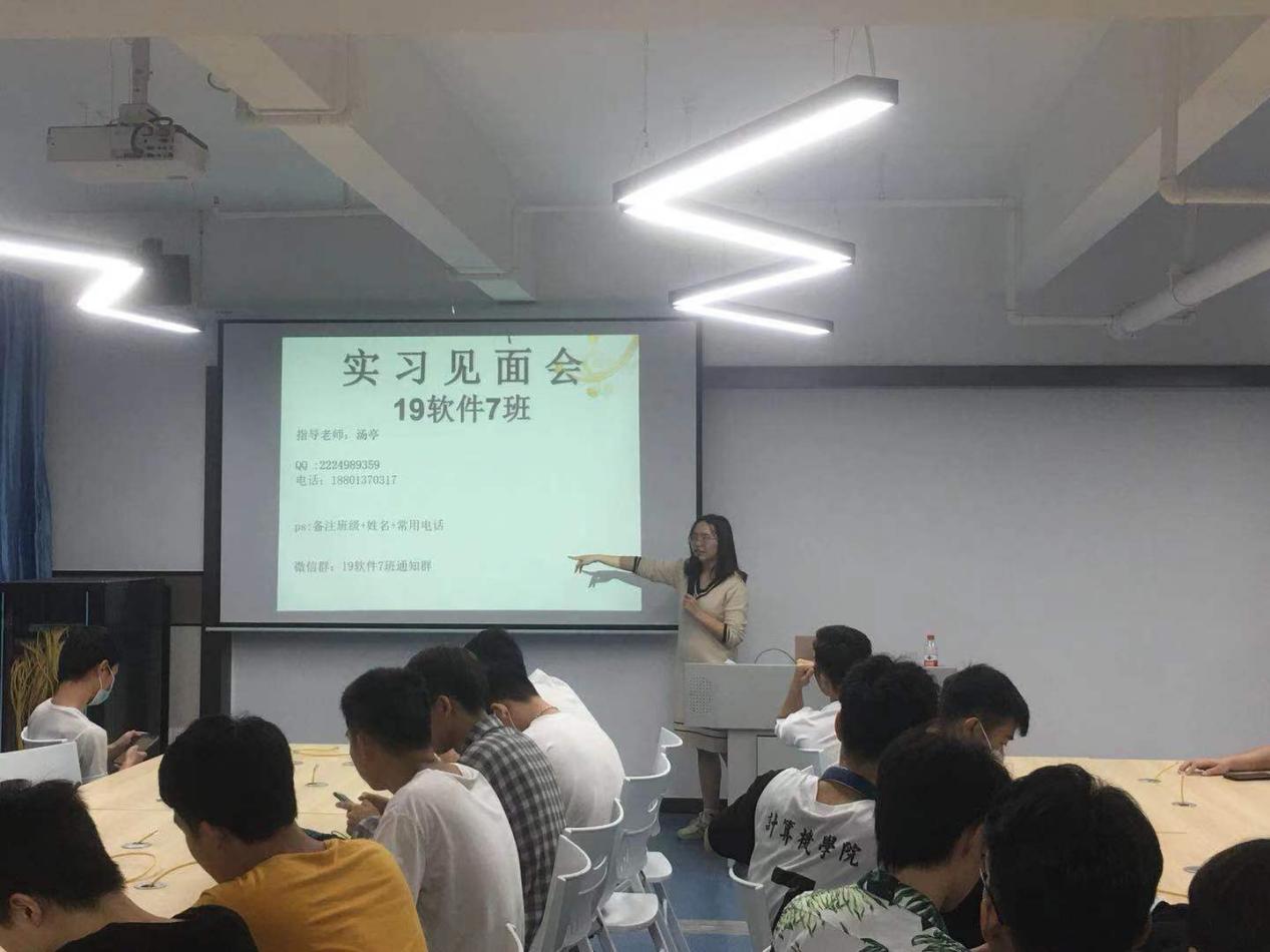 在指导师生见面会上,各指导教师根据学院安排,下发《致2019级学生的一封信》;建立实习微信群和 QQ 群;注册和认证实习管理平台“校友邦”;做好学生离校实习前实习档案管理工作 。