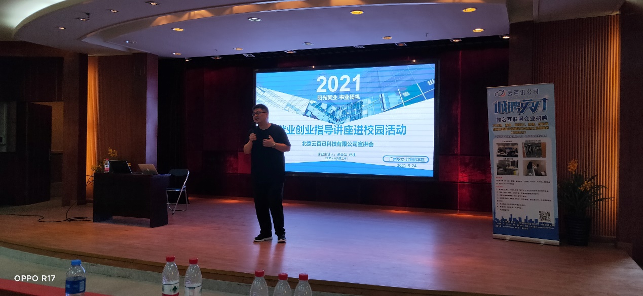 5月24日早上,由中国南方人才市场管理委员会办公室主办,广州华立科技职业学院承办的“阳光就业·事业扬帆”就业创业指导进校园公益讲座在本科楼1号报告厅举行。广州华立科技职业学院毕业生就业创业指导中心专家、计算机学院院长、校外教学主任以及北京云百讯科技有限公司(负责百度地图大数据的分析和处理)分管人事副总裁,为2019级学生带来了题为“阳光就业·事业扬帆”的精彩宣讲会,宣讲会历时3小时。计算机学院约200名师生参加了此次宣讲会。