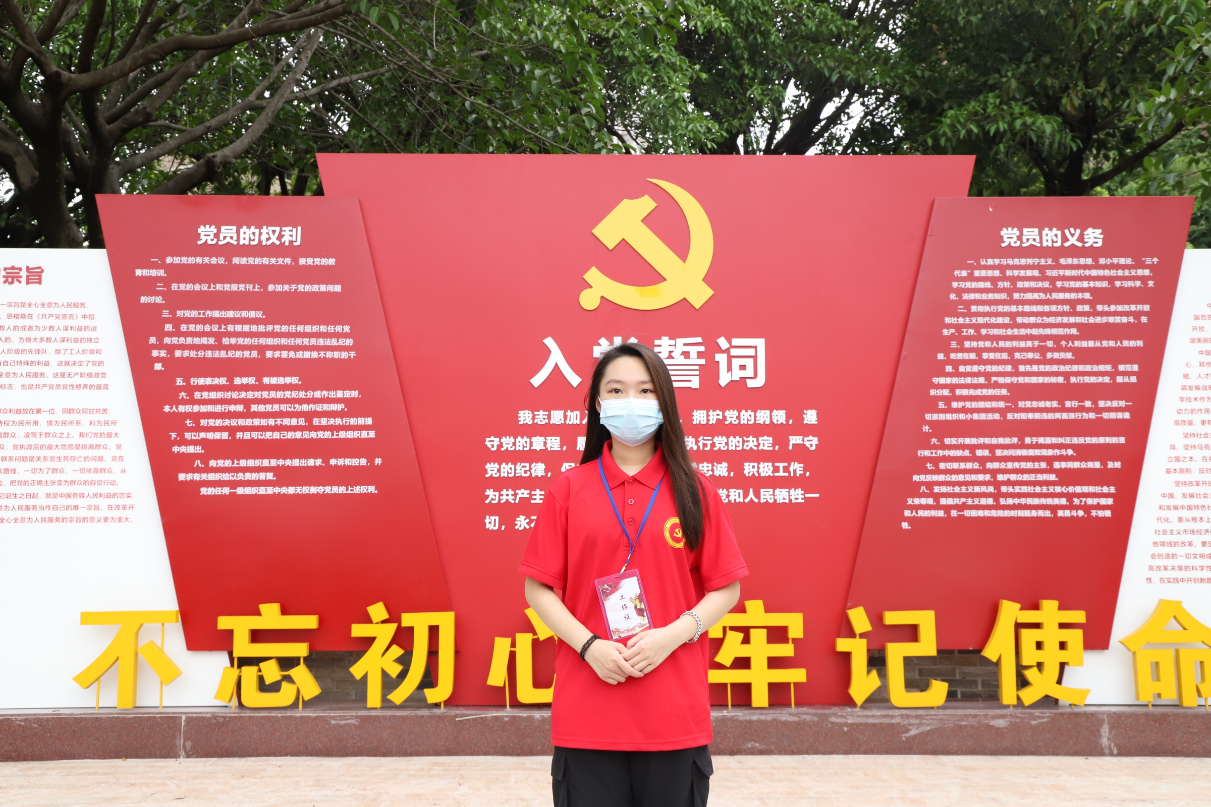 在领誓人的带领下,面向党旗、庄严宣誓。“我志愿加入中国共产党,拥护党的纲领,遵守党的章程,履行党员义务,执行党的决定,严守党的纪律,保守党的秘密,对党忠诚,积极工作,为共产主义奋斗终身,随时准备为党和人民牺牲一切,永不叛党。