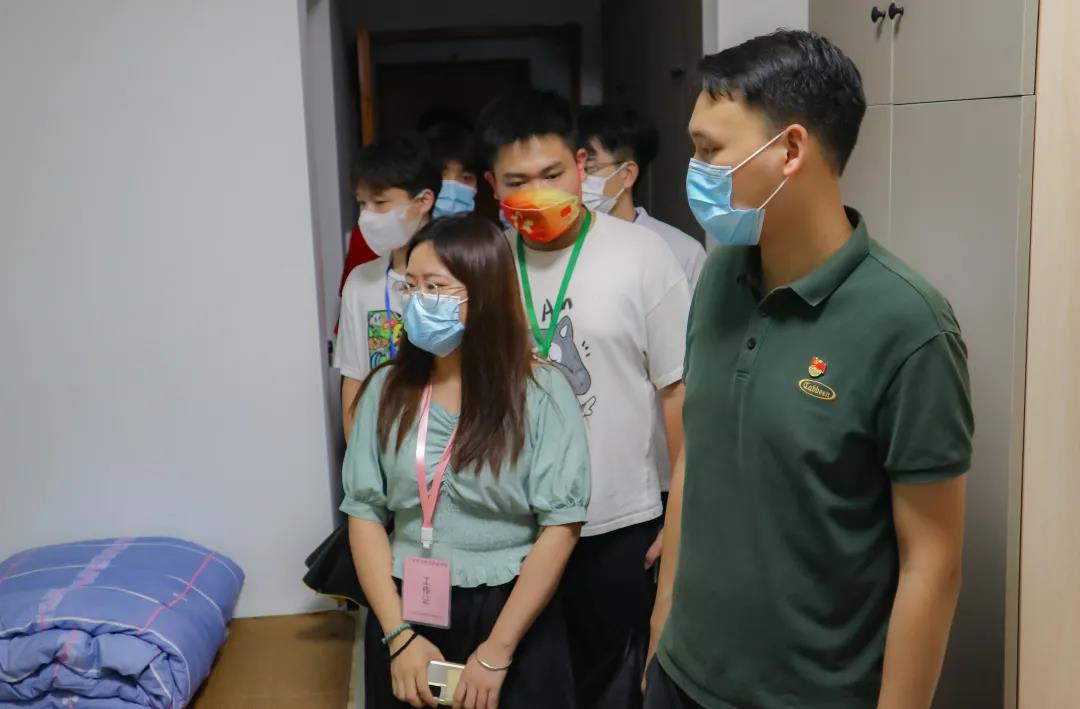 为详细了解我院2021级新生各方面的情况,传达学院对学生的关怀,帮助他们更快适应大学生活,9月6日下午17:10分,由我院学管主任杨涛老师,团总支书记郭丽纯老师带队,19级辅导员吕文平老师,20级辅导员王明伟老师,20级辅导员温海浚老师,21级实习辅导员蔡航老师,21级实习辅导员庾源政老师及团总支学生会、党建小组一起走访新生宿舍,慰问21级新同学。