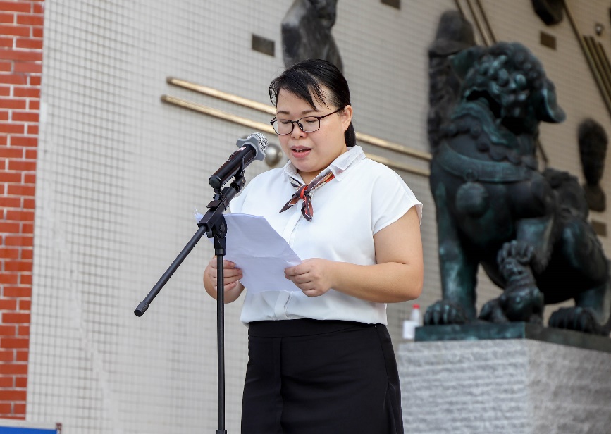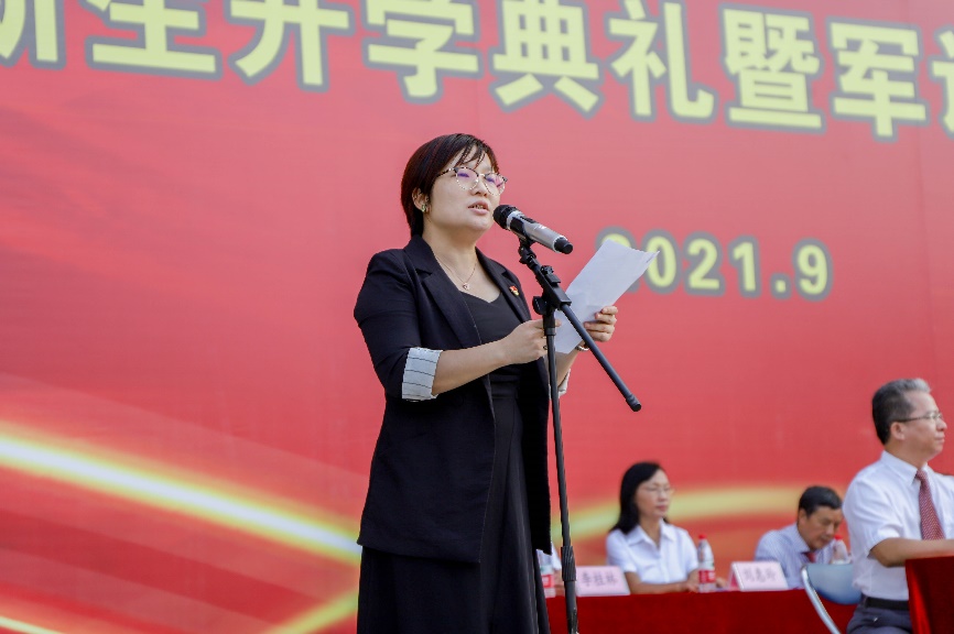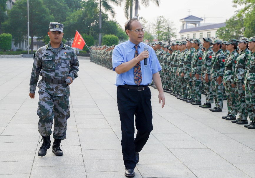 汇演结束后,由马俊副校长宣读《关于表彰2021年新生军训先进集体和先进个人的决定》,表彰了“军训先进连队”、“优秀教官”、“优秀军训生”等先进集体与个人。紧接着,分别有广州增城区武装部邓伟健主任,党委书记林伟健教授,马龙海执行校长,教师代表闵小翠老师,新生代表2021级计算机网络技术专业陈善腾同学上台发表演讲。