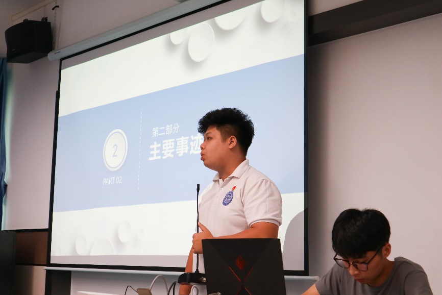 会议开始,全体起立奏唱团歌,随后9位主席团候选人依次上台进行演讲。每位候选人都展示了各自一年来的工作经历,以及对未来的展望和努力做好团学工作的决心。