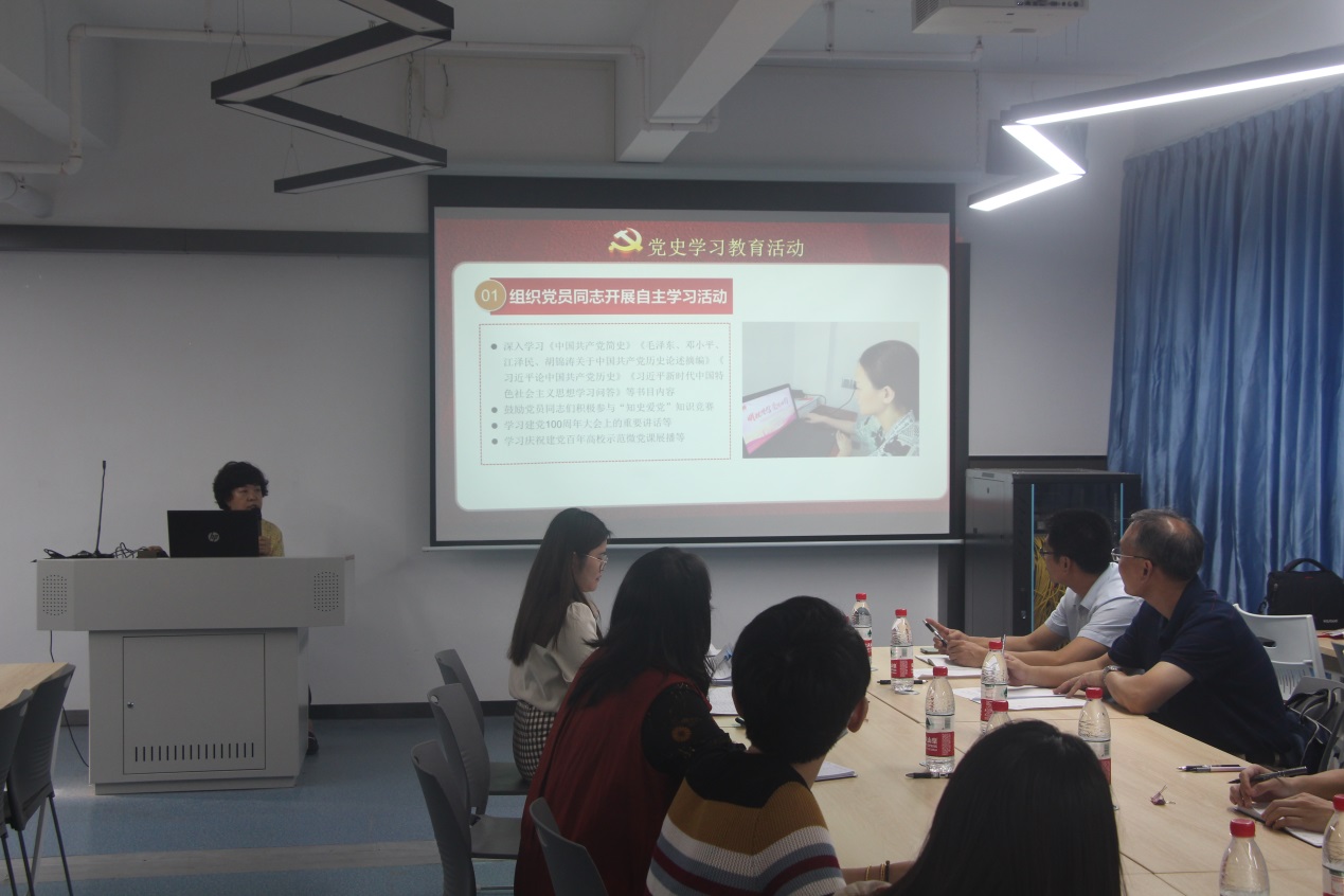 首先由计算机信息工程学院党总支书记王建华同志对计算机信息工程学院党总支党史学习教育活动开展情况进行汇报,王书记从组织党员同志开展多样专题学习与专题研讨活动、“我为群众办实事”开展情况、课程思政等方面介绍了党史学习教育方面的工作情况,并对工作中存在的问题进行剖析。