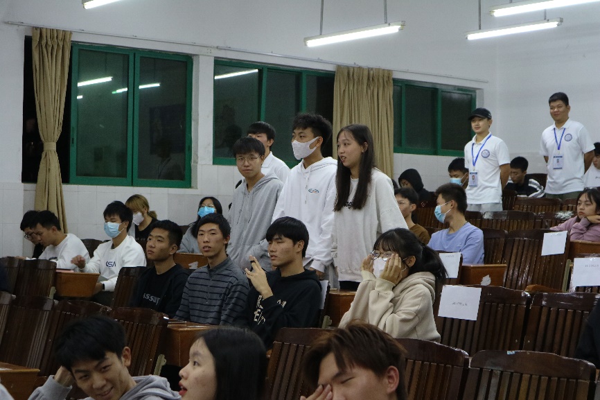 本场比赛分为必答题、抢答题、趣味问答题三个环节。每支班级代表参赛队伍信心满满,拉拉队的现场加油打气,激起他们为班级夺冠的斗志。