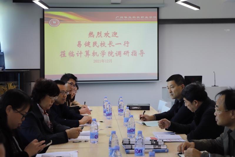 2021年12月1日下午,易健民校长一行到计算机学院调研。计算机学院王建华院长,各线主任、系主任及教师代表参加此次调研活动。