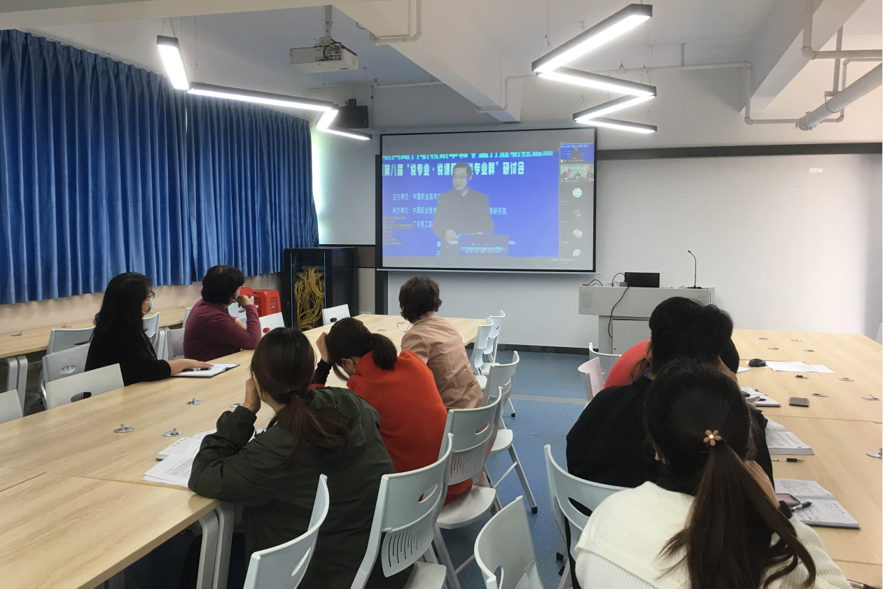 12月10日,中国职业技术教育学会第八届“说专业、说课程、说专业群”研讨会在广东轻工职业技术学院举行。研讨会采用线上加线下的方式同时开展,计算机信息工程学院全体教师在西三501通过线上云会议共同参加了本次研讨会学习。