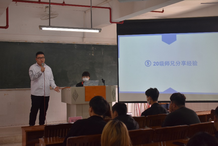 紧接着,陈梓涵师兄向同学们分享了去年参加寒访活动的经验。他表示在寒访活动中,不仅锻炼自己的组织能力和表达能力,同时在与师弟师妹的交流中更加坚定自己前进的目标。