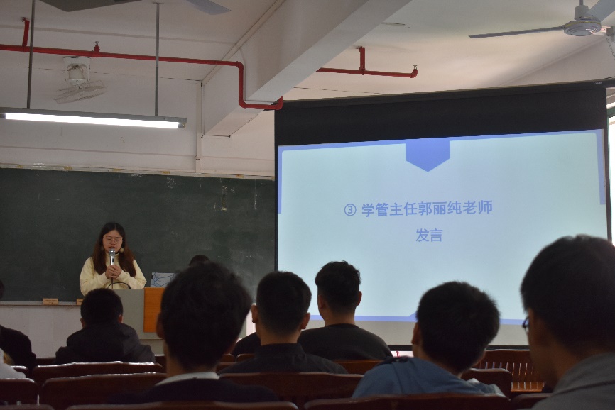 大会开始,由学管线负责人郭丽纯老师发言,郭丽纯老师跟大家讲述了本次实践活动的目的是为了加强思想政治教育、提高大学生实践能力,同时感念师恩,弘扬爱校精神。