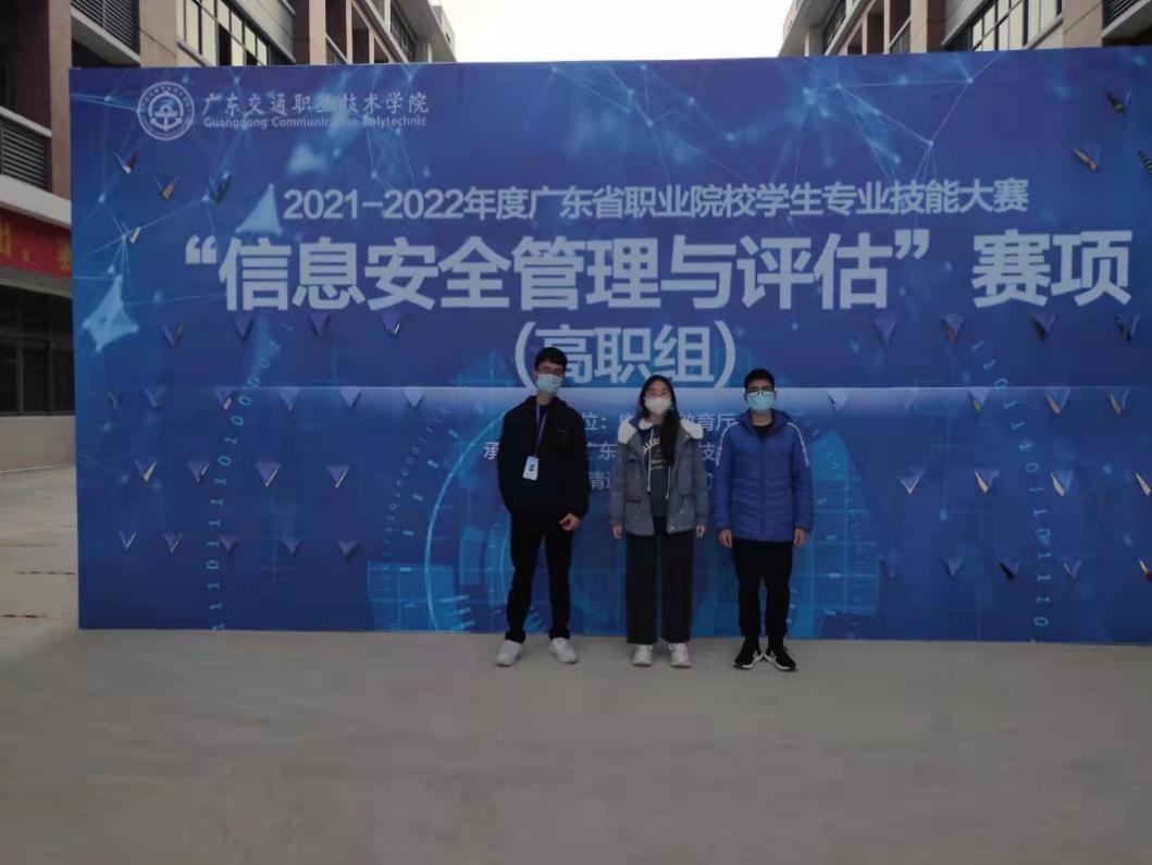 2022228日,由广东省教育厅主办的2021-2022年度全国职业院校技能大赛高职组“信息安全管理与评估”赛项在广东交通技术职业学院举行。计算机信息工程学院钟明闵小翠老师指导的20计算机网络技术2班李金林、李华铸、邓丽三位同学与来自全省47支代表队同台竞技,经过一天的激烈角逐,最终获得省赛二等奖。