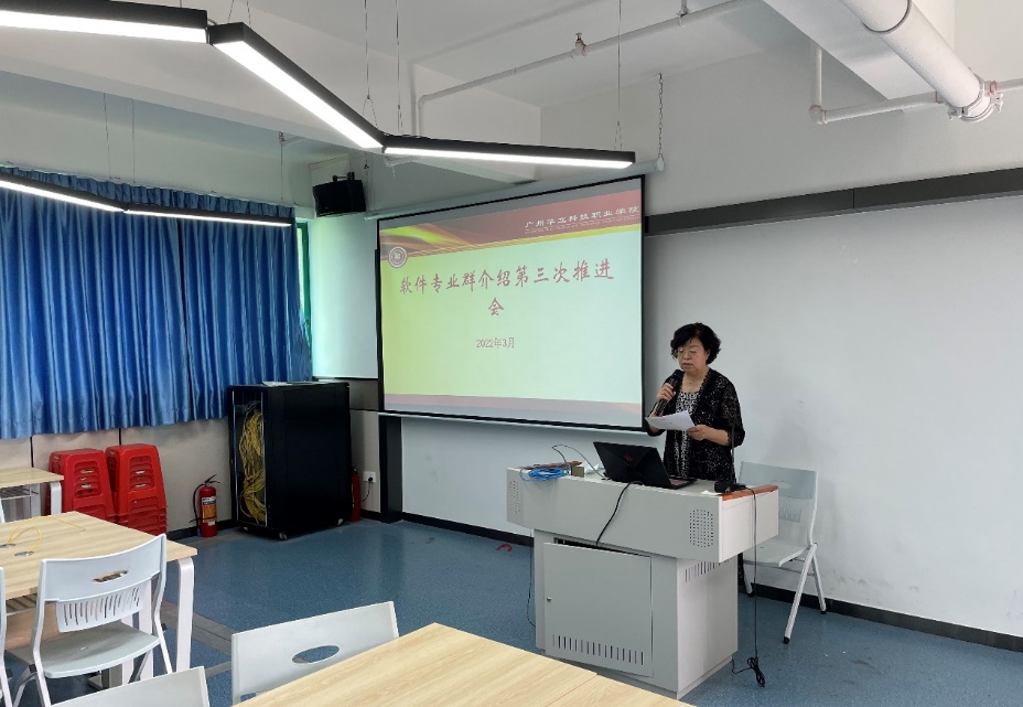 2022年3月31日,计算机学院于西三-501召开软件技术专业群第三次推进会议,会议由王建华院长主持,全体教师参加。