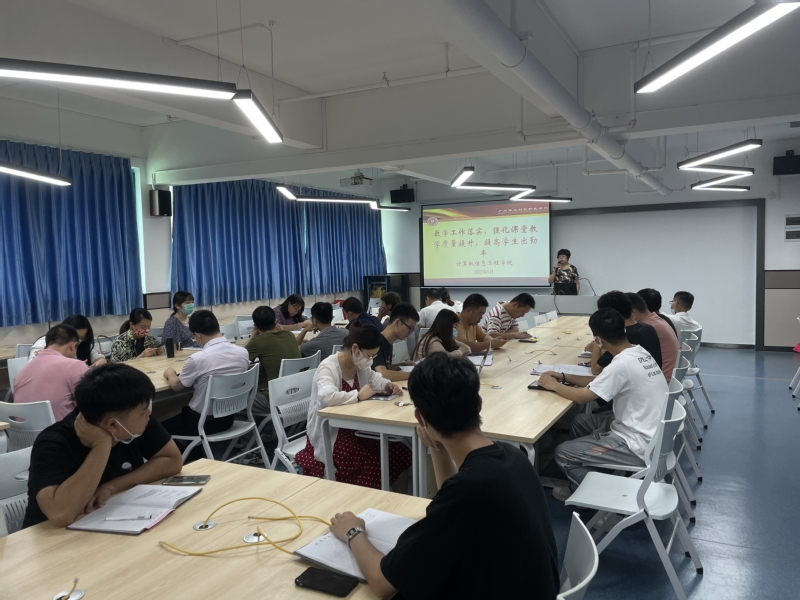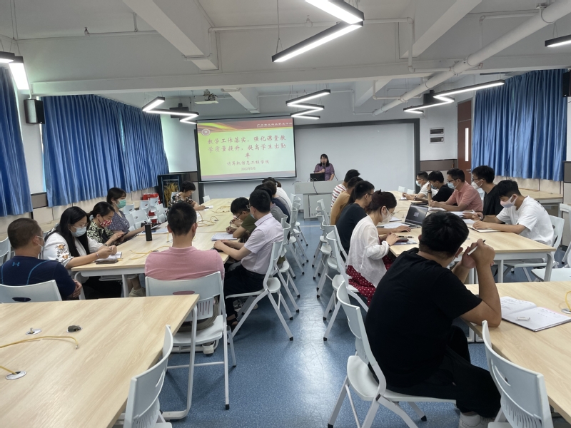 2022年5月26日,计算机学院于西三-501室召开“教学落实,强化课堂教学质量提升,提高学生出勤率”工作例会,会议由计算机学院王建华院长主持,参加会议的有办公室主任蔡文钦、教学副主任闵小翠、学管副主任郭丽纯、校外教学副主任黄志强以及学院全体老师。