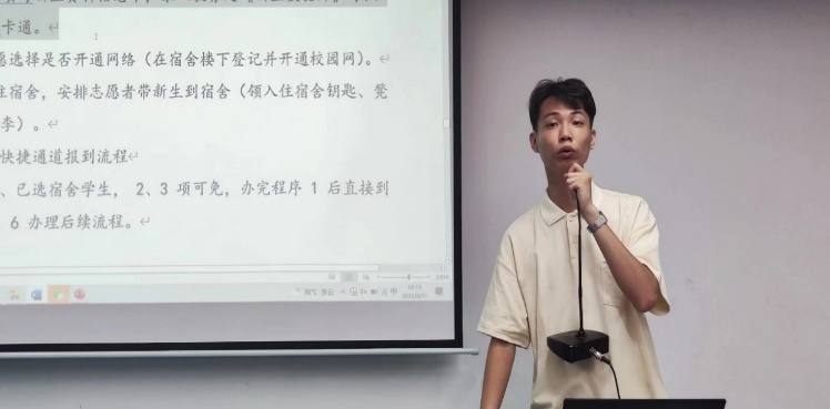 会议上计算机学院团总支书记温海浚老师为迎新志愿者们细致的讲解了迎新工作流程