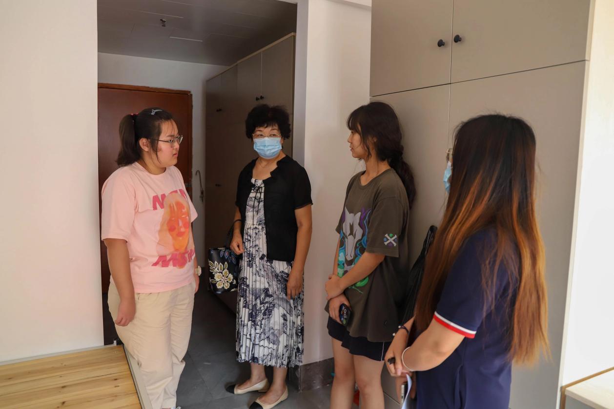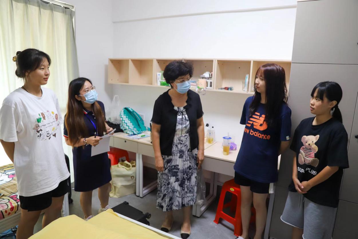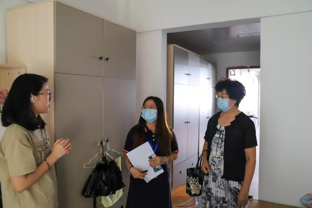 师及部分学生志愿者走访新生宿舍,为做好学生返校后疫情防控工作,学