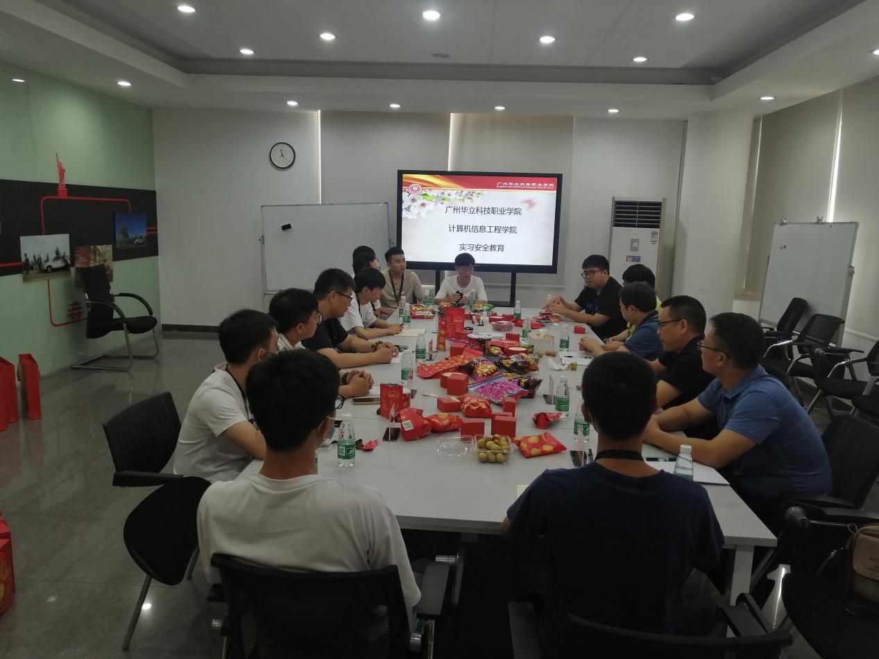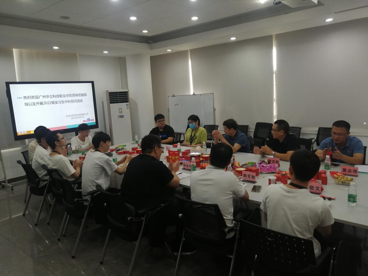 9月7日,中秋佳节之际,广州华立科技职业学院校长易健民、校外教学与就业管理处副科长韦建林、计算机信息工程学院办公室主任蔡文钦、校外教学副主任黄志强老师一行到北京云百讯科技有限公司佛山分公司看望2020级实习学生,开展中秋节慰问活动。