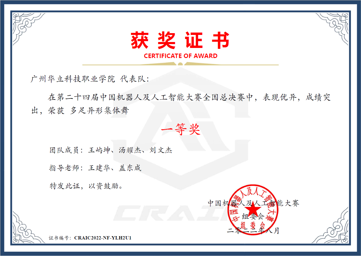 近日,第24届中国机器人及人工智能大赛全国总决赛落下帷幕,我校学生经过省赛选拔两支队伍进入全国总决赛,并一举获得多足异形集体舞赛项一等奖的好成绩。