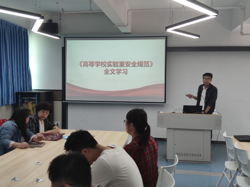 接着吕文平老师带领大家学习《高等学校实验室安全规范》的内容,包括实验室安全责任体系、实验室安全管理制度、实验室安全教育培训、宣传、实验室安全准入等,同时重申我院实验室安全管理规定,列举了平时实验室使用过程中遇到的安全问题和解决方式,要求各教师要严格遵守,提高安全意识和应急处置能力。