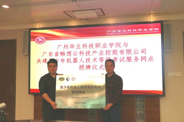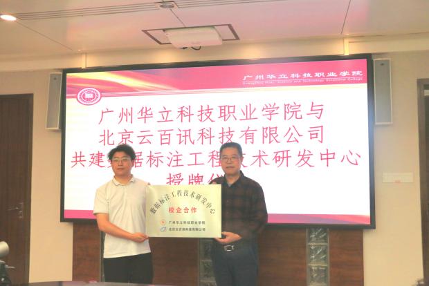 最后企业代表分别将信创产业学院、360网络安全实习实训基地、数据标注工程技术研发中心和青少年机器人技术等级考试服务网点四块牌匾授予广州华立科技职业学院,这也标志着双方的校企合作模式进入了一个全新“深度融合”阶段。