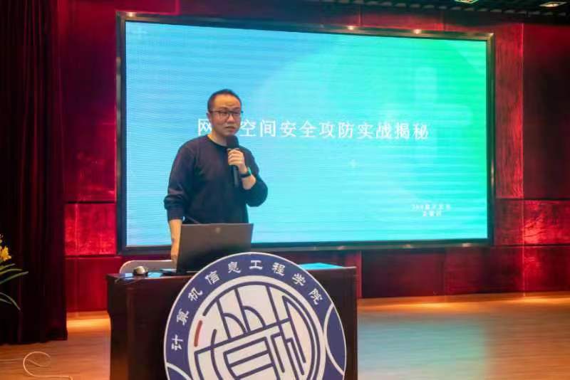 360数字安全集团网络安全学院资深顾问金敬钊先生,计算机信息工程学院办公室主任蔡文钦老师,计算机信息工程学院行政人事主任王兰丰老师,计算机信息工程学院团委书记温海浚老师出席本次讲座。