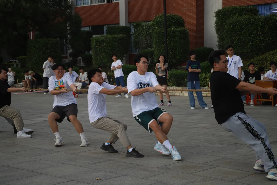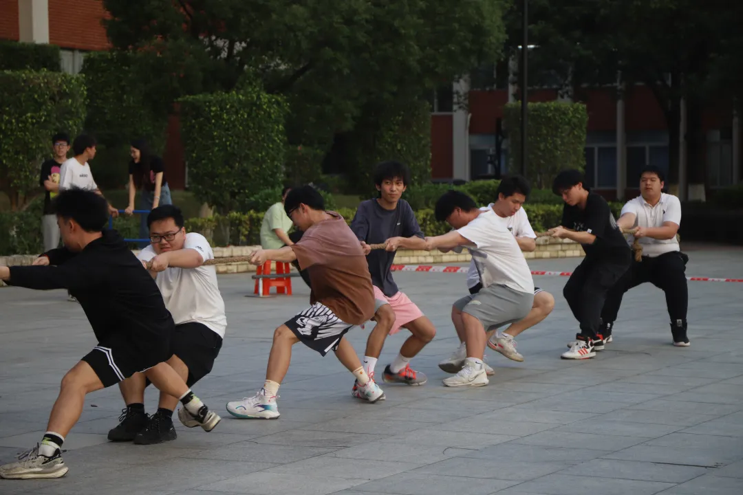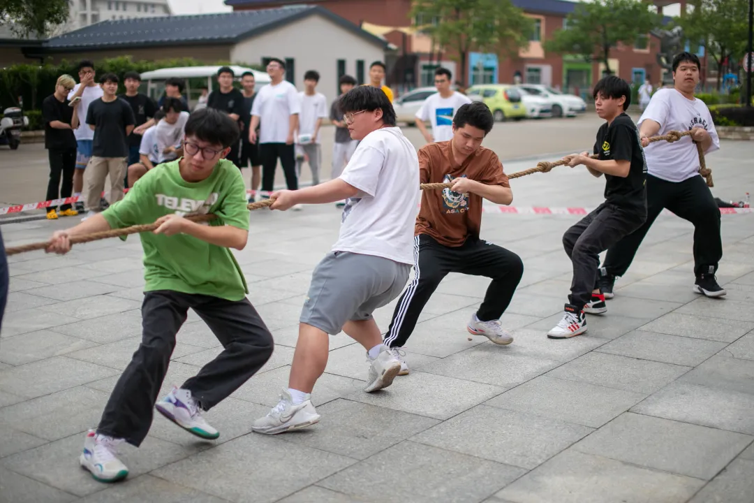 正午的阳光显得格外耀眼。参赛队员们早早来到赛场。各组陈兵列阵、摩拳擦掌、跃跃欲试。当比赛开始的哨声响起,队友们全都紧握绳子,憋足了劲把绳子往后拉。同学们在旁边为自己的班级加油呐喊着,每个人都恨不得抓起绳子跟选手一起努力,使得整个场面既激烈又温馨。