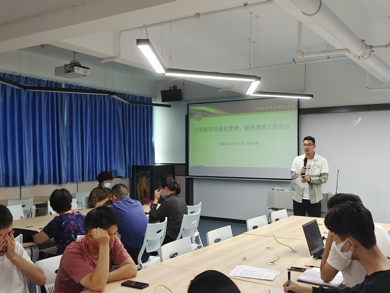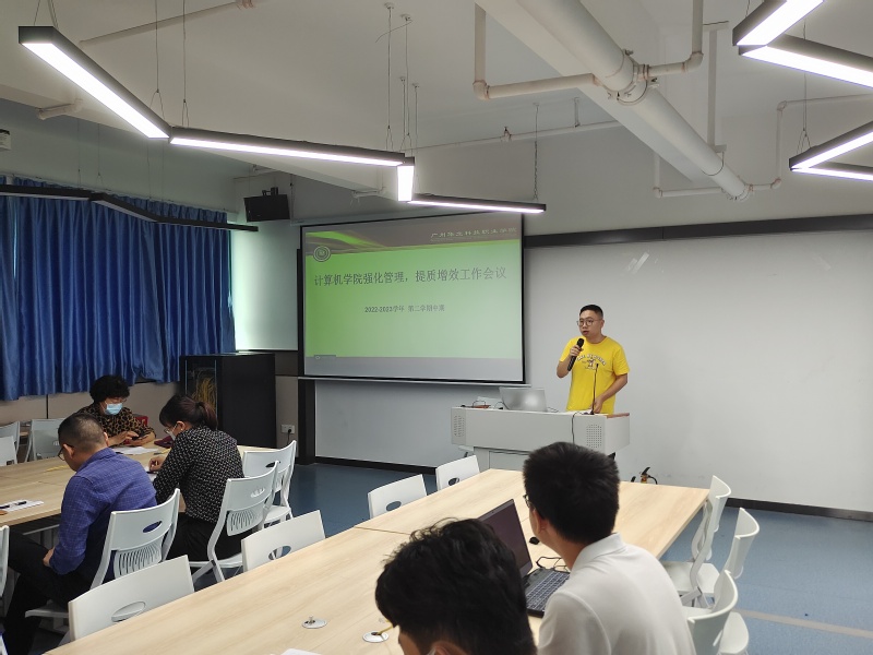 为贯彻落实学校2022-2023学年第二学期工作任务,计算机信息工程学院于2023年5月8日中午在西三501多媒体课室召开了学院全体教职工会议,学院王建华院长、办公室主任蔡文钦、各科室主任、各系主任及学院全体老师参加了会议。会议由王兰丰老师主持。