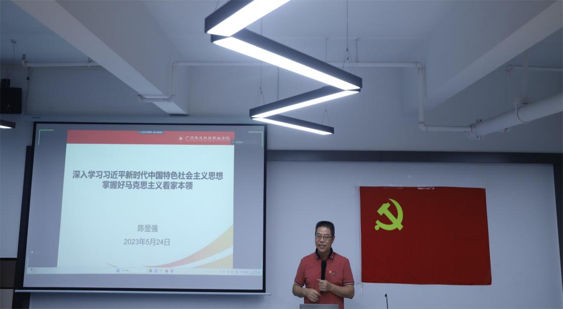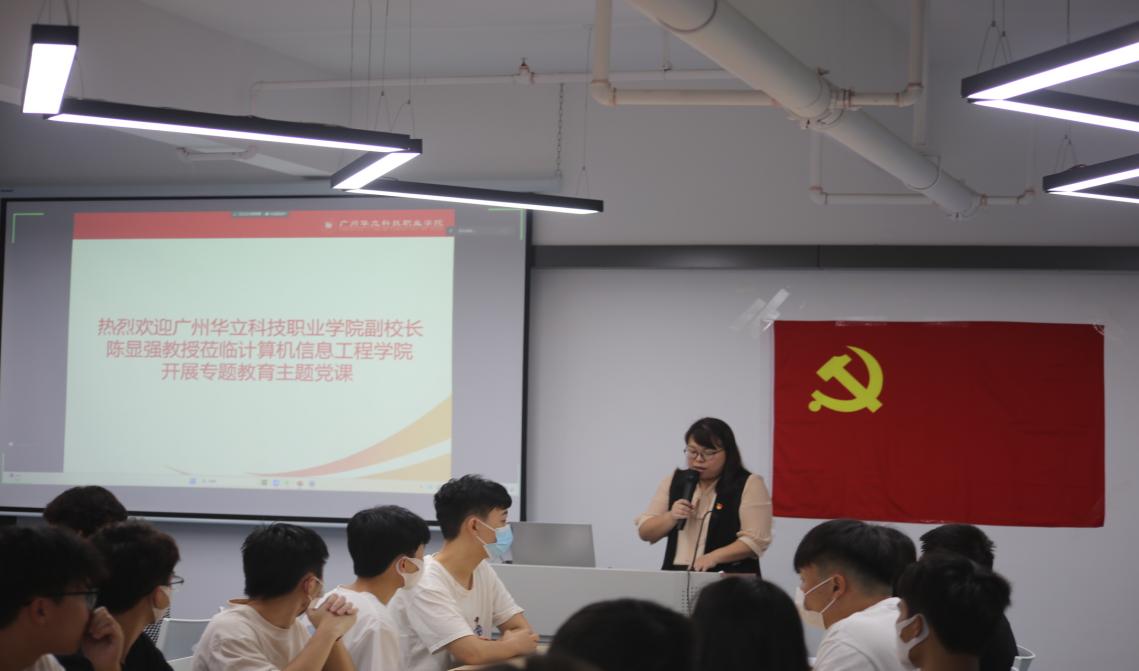 按照《中共广州华立科技职业学院委员会关于深入开展学习贯彻习近平新时代中国特色社会主义思想主题教育学习研讨方案》整体安排,5月24日,广州华立科技职业学院副校长陈显强为计算机信息工程学院党总支的师生党员、入党积极分子讲授《深入学习习近平新时代中国特色社会主义思想,掌握好马克思主义看家本领》专题党课。专题党课以现场和云浮校区视频连线相结合的形式进行,计算机信息工程学院党总支师生党员、入党积极分子103人参加党课。