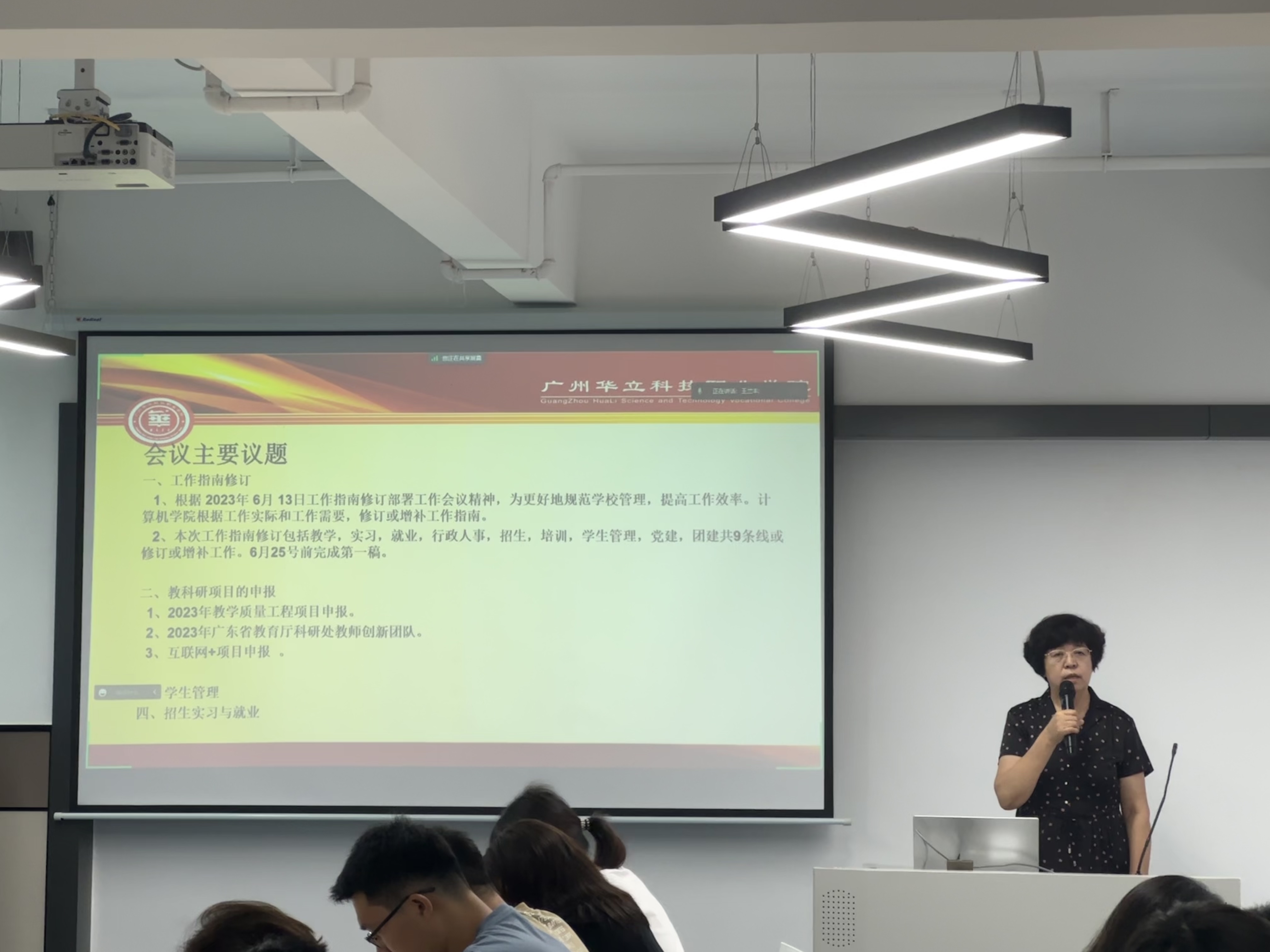本学期临近尾声,计算机学院为了总结前段时间工作成效和学期末各项工作顺利开展,在西三-501召开全院教师大会(云浮校区计算机系教师线上参会)。计算机学院王建华院长、各线负责人以及全体教师参加了本次会议。会议由计算机学院王建华院长主持。