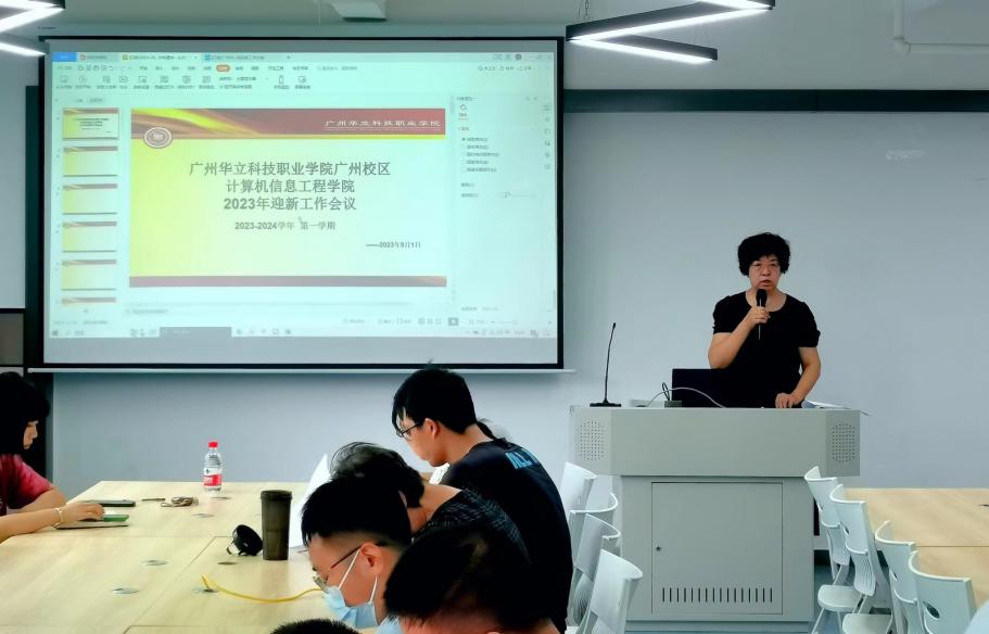 接着,行政副主任王兰丰老师传达了学校对学院迎新工作要求,要确保迎新工作的安全有序、优质高效。王兰丰老师详细介绍了计算机信息工程学院2023级新生入学教育的具体安排,入学教育包括各专业介绍、学术讲座、《学生手册》学习、《党章》学习等方面,为2023级新生更好更快适应大学的学习生活打下基础。