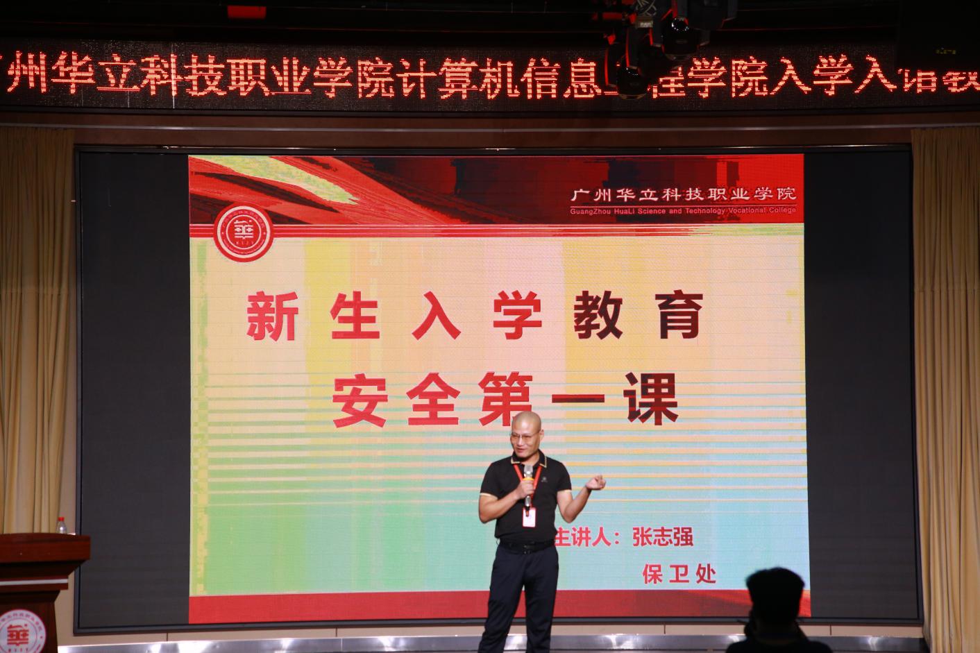 紧接着由广州华立科技职业学院保卫处张志强科长为2023级新生作安全教育,张志强科长表示大学生安全教育与大学生学习、生活紧密相连,我们必须认真对待安全教育,把安全教育落到实处,尽可能避免不理智的行为和意外事故发生,为我们的生活与学习营造更好的环境,创建和谐校园。