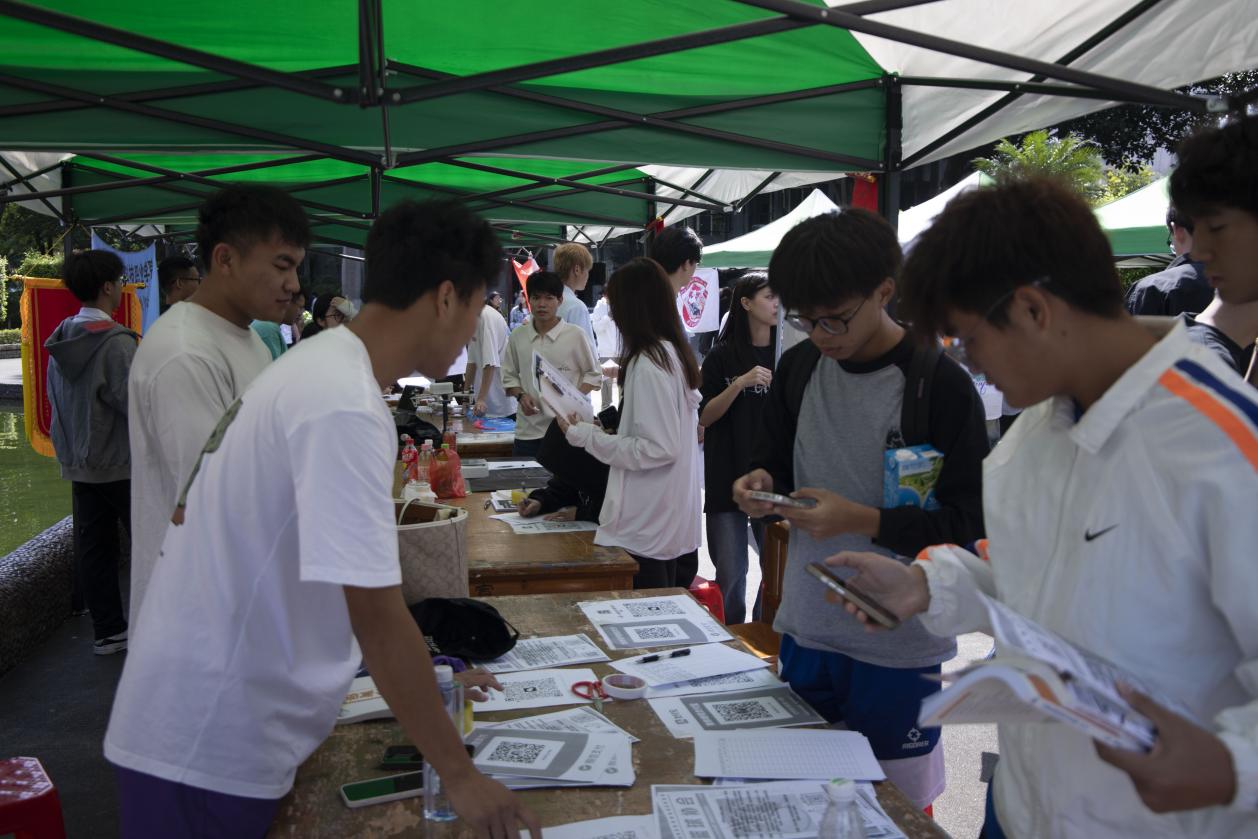 伴随着下课铃声的响起,同学们陆陆续续的涌入,使得计算机信息工程学院团委学生会的招新摊位热闹了起来,在面对学弟学妹们的各种疑难疑惑中,学长学姐们也非常的有耐心为他们讲解和介绍,并对每一位大一新生做好报名登记。