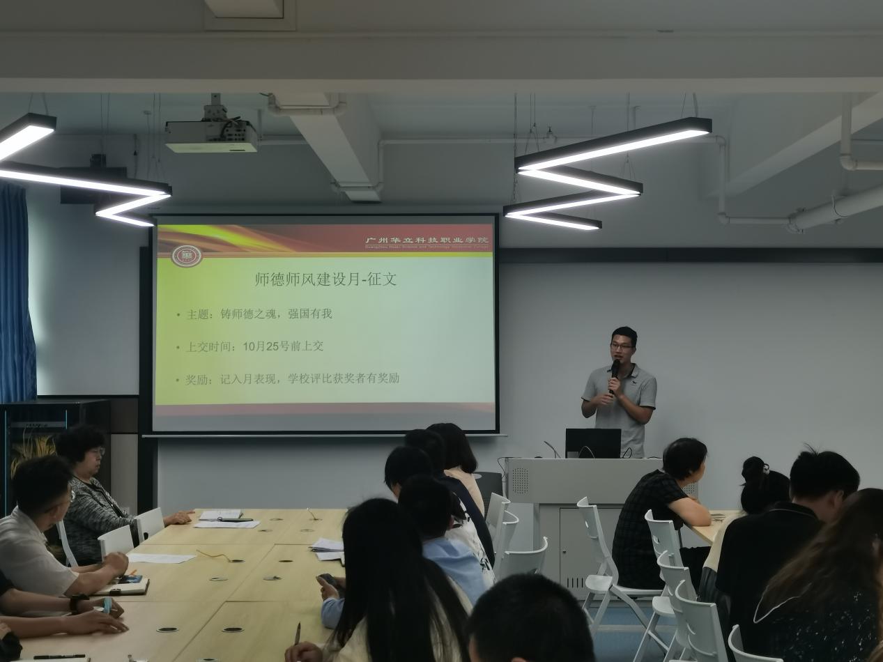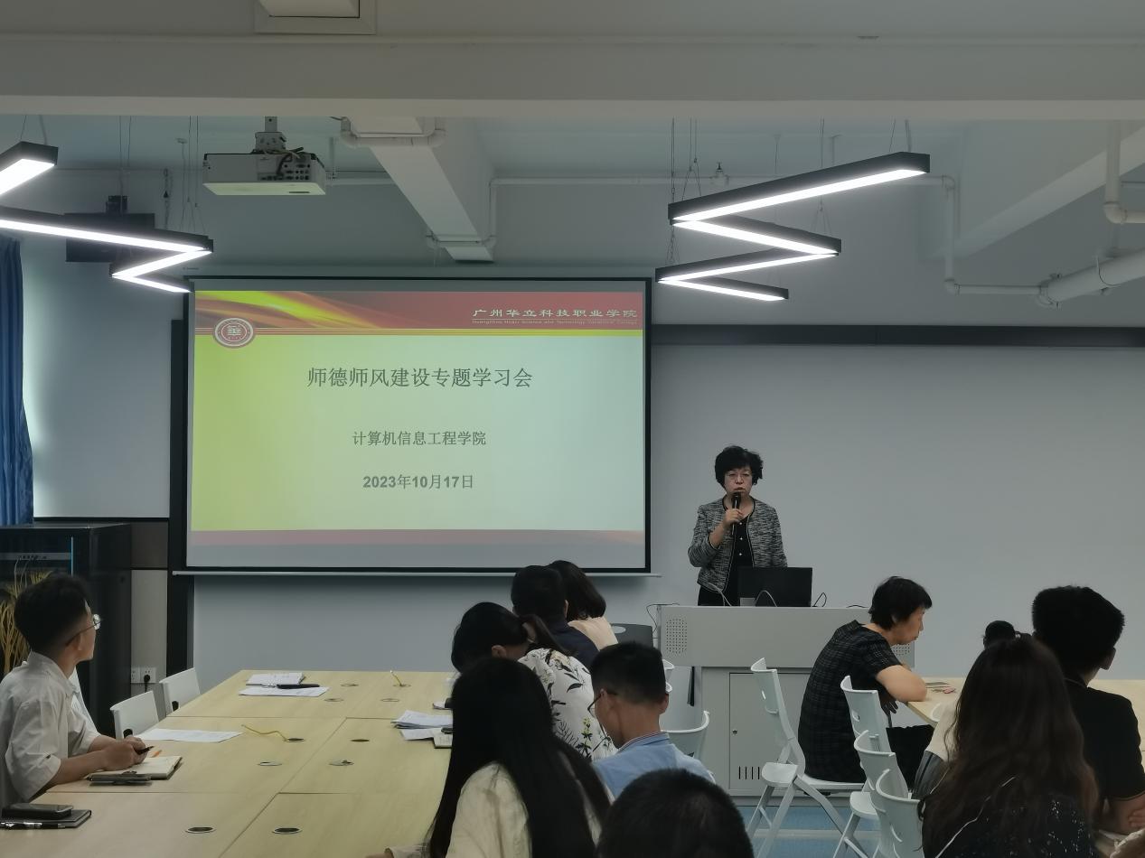 为了进一步规范教师职业行为、明确师德底线,弘扬教师立德树人、爱岗敬业、为人师表的高尚师德,充分展现教师队伍崇高的师德风貌,广州华立科技职业学院计算机信息工程学院于2023年10月17日开展了“躬耕教坛,强国有我”师德师风建设专题学习会。