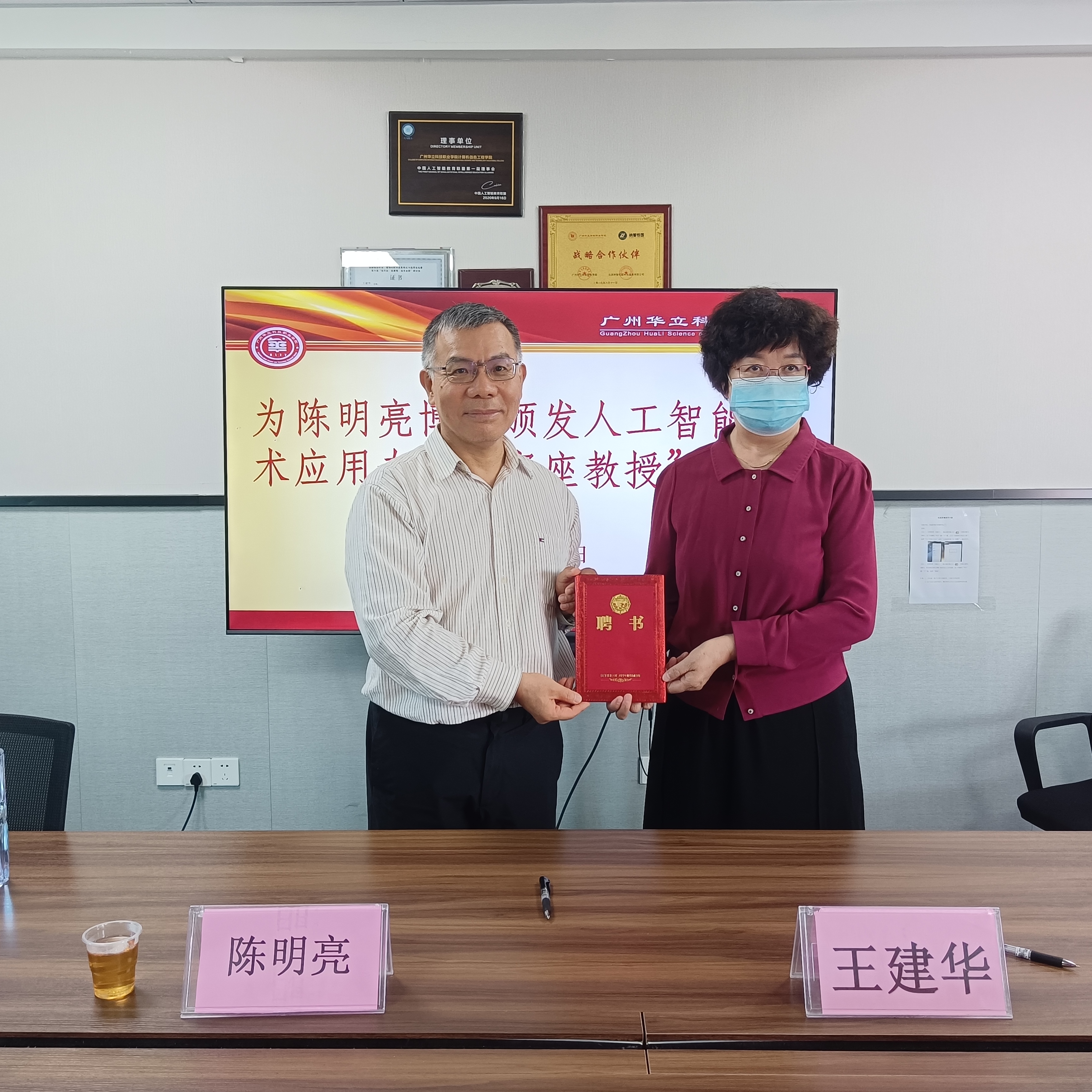 为陈明亮博士颁发人工智能技术应用专业“客座教授”聘书
