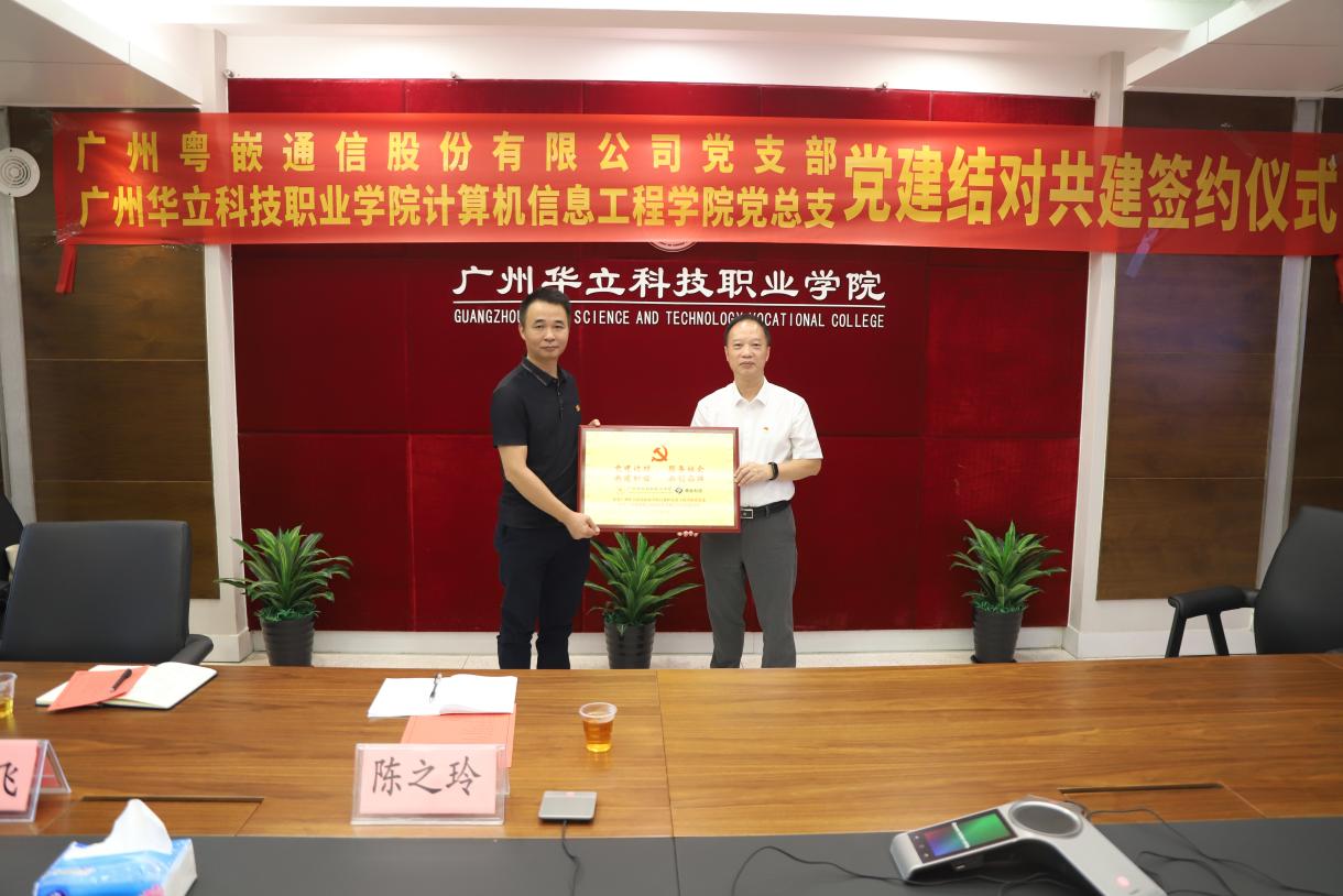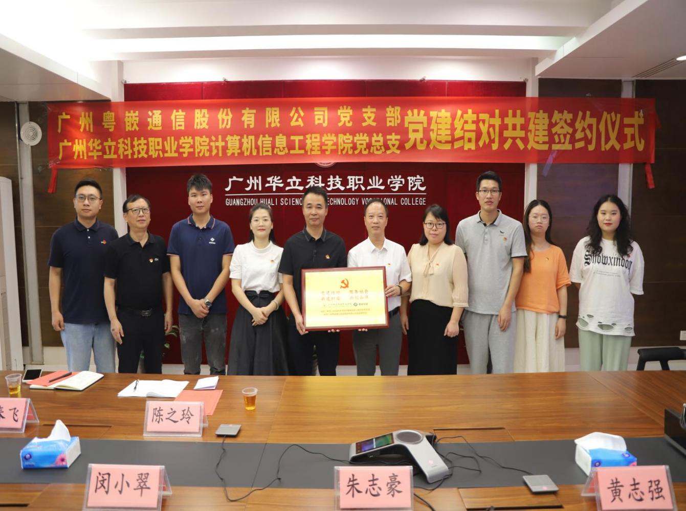 双方代表就党建结对共建工作进行深入交流。学校党委书记陈良声与广州粤嵌通信科技股份有限公司党支部代表李春飞总经理为党建结对共建授牌,标志着校企党建结对共建的正式启动。