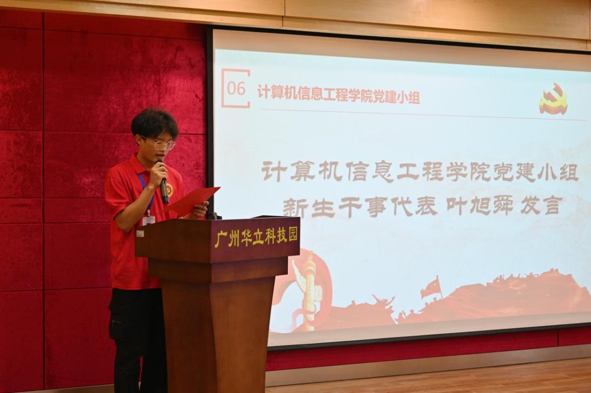 叶旭舜同学作为新一届党建小组干事代表,号召同学们,要知责任、尽义务,认清自我定位;要主动承担责任,精诚团结,共同进退;敢于战胜困难,绝不轻言放弃;做到知行合一,锐意进取,为学院党建工作贡献力量。