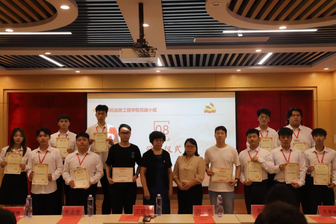 计算机信息工程学院学管主任朱志豪老师,公布了2023年党建小组“优秀干部”以及“工作积极分子”名单,王建华院长、闵小翠书记为获奖同学颁奖。