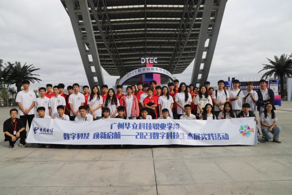 20231112日,广州华立科技职业学院计算机信息工程学院师生受邀参加中国电信2023“数字科技,焕新启程”——数字科技生态展,开展实践活动。学校产教融合办主任陈茜、计算机信息工程学院院长王建华教授、党总支书记闵小翠、团委书记胡蓉、党建小组指导老师张栢桐以及50名学生代表抵达会展中心现场进行学习交流,院长王建华教授应邀在展会上作云计算技术专题介绍。